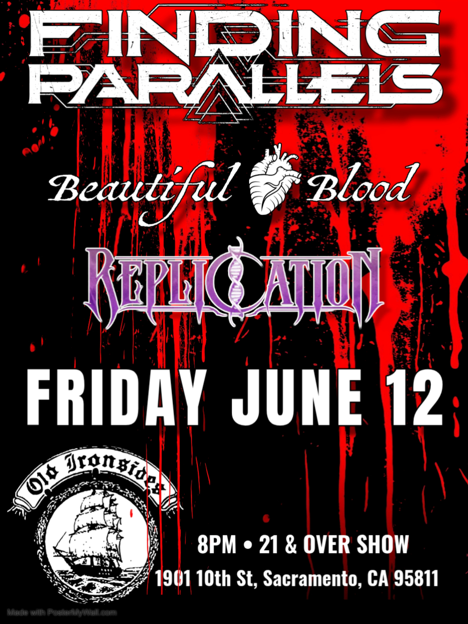 Beautiful Blood returns to the legendary Old Ironsides in Sacramento with Finding Paralles and Replication. This is an family freindly event. Doors at 7, show at 8. Get your Tickets HERE